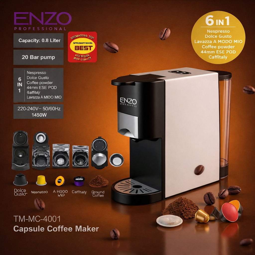 ☕ Cafetière ENZO PROFESSIONAL 6 en 1 – Machine à café multi-capsules