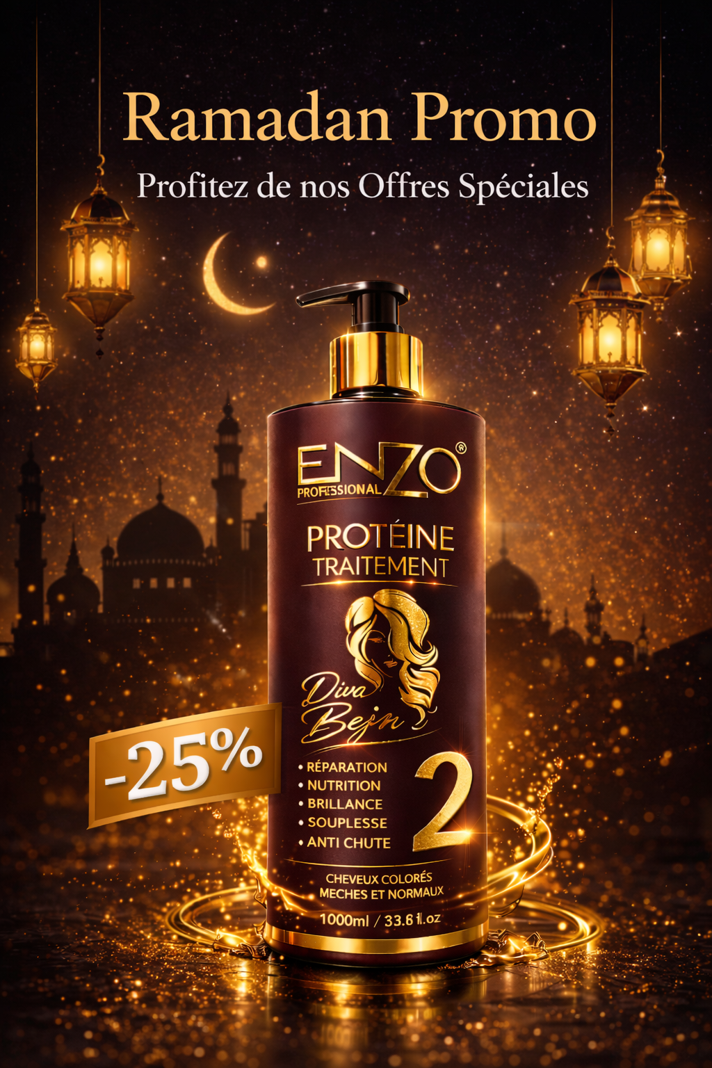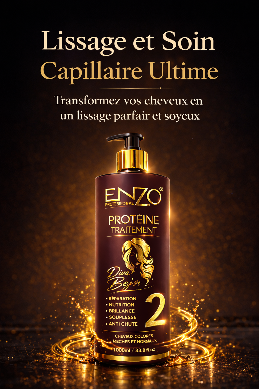 إنزو بروتين 2 لعلاج وتنعيم الشعر هو علاج احترافي متطور مصمم لإعادة بناء ألياف الشعر التالفة ومنحك شعراً ناعماً، لامعاً وصحياً من أول استعمال.